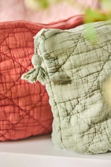 Quiltet toilettaske i blød bomuld fra Ib Laursen i farven Pistacie – perfekt til opbevaring af makeup og toiletartikler. Denne bomuldstoilettaske kombinerer praktisk funktion med stilrent design og er ideel til både hverdag og rejser. Fremstillet i bomuld med fyld af 100 % polyester for ekstra holdbarhed.