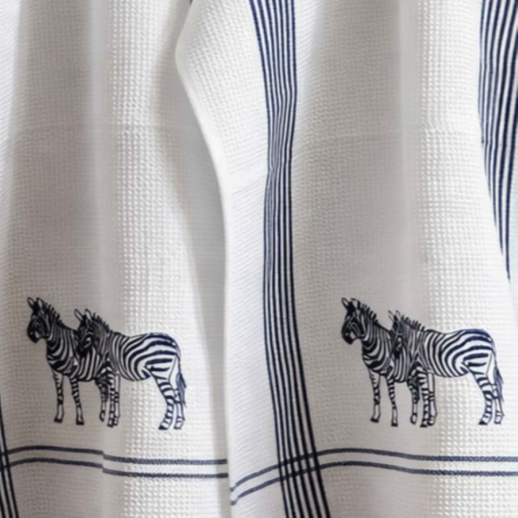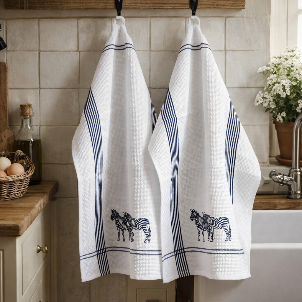 Viskestykke, Vaffelvævet, Hvid med broderi af Zebraer, 50x70cm, bomuld